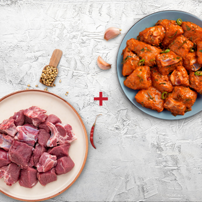 TenderCuts offers a vast catalogue of fresh and juicy meat products online. Whether you wish to place an order for fresh meat delivery or an assortment of lip-smacking cold cuts, non-veg snacks, pickles, dressings, and spices, you can find it all. At TenderCuts, we also offer a range of scrumptious ready-to-cook, freshly marinated meat products with authentic flavours. Also, sample our all-in-one Chicken and Mutton Biryani Kits to satiate those Biryani cravings in minutes.